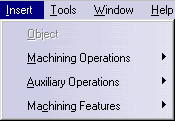 | Machining Operations | Creates Machining Operations in the program. This is described in the User's Guides of the various NC products. | |