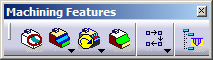 This toolbar contains commands for managing machining features. The commands available depend on the Machining workbench (the figure below illustrates the toolbar for Prismatic Machining).