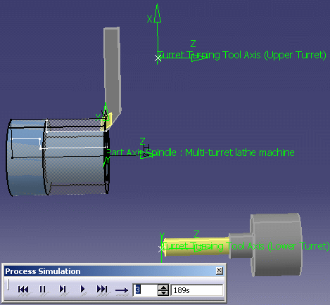 collisions between tools. This task shows how to review the synchronization between two machining operations using a time based replay. |