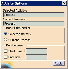 If you leave the button on Selected Activity, the Apply button remains grayed out. If you change the option so that you are asking to run to the end of the current process, the button will be active again. Once you press it, it will be grayed out until you make another selection. | |