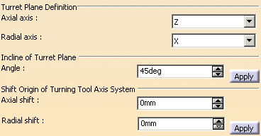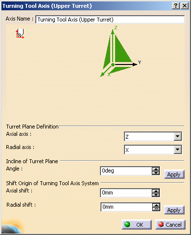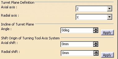 Note that the Radial and Axial shift fields are reset to 0, even if the current absolute position of the Turning Tool Axis System is not 0.