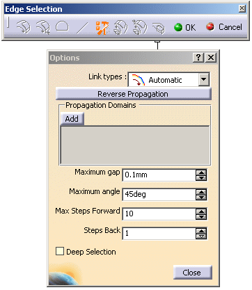 In the Edge Selection toolbar that appears, set Link