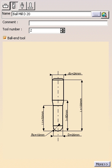 Enter a name of the new tool (for example, Ball Mill D 20).
