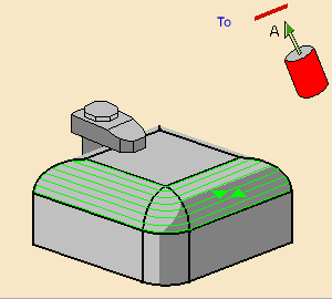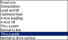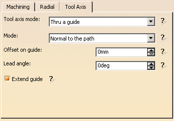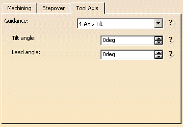 Multi-Axis Isoparametric Machining: Tool Axis ParametersTool axis guidance Note that modifications of the tool axis generated by the mode you have selected apply only to the machining passes, not to the between paths passes. Below you will find the explanations of the various Guidance types, then