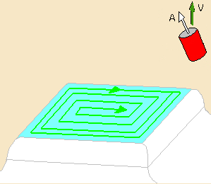 Multi-Axis Spiral Milling: Strategy ParametersThe Multi-Axis Spiral Milling strategy parameters are distributed into 5 tabs: In addition to the parameters available in those tabs, you have to select a tool path style, and to define the view axis, the tool axis and the start direction, depending on the tool path selected. Tool path style Indicates the cutting style of the operation: