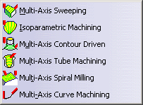 The menu commands that are made available when Multi-Axis Surface Machining is installed are described below.