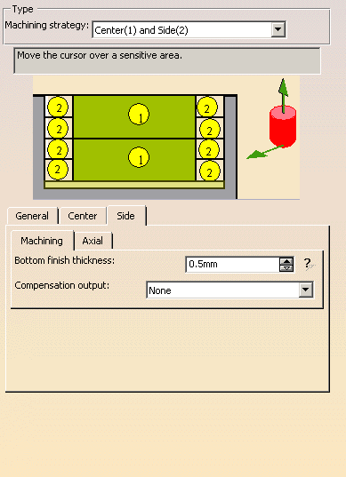 - Machining strategy: Center(1) and Side(2)