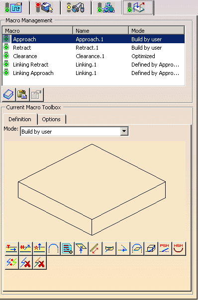 For linking macros, Defined by Approach/Retract mode is also available.