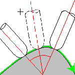 Specifies the position of the tool regarding the surface to be machined.