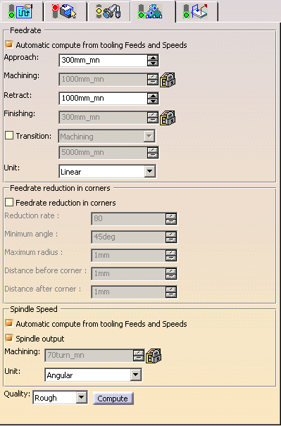 feedrates for approach, retract, machining and finishing as well as a
