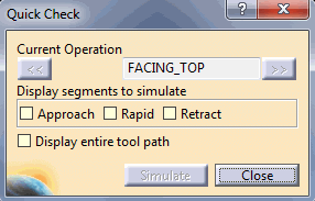 segments of a tool path like Approach, Retract and Feed. You can simulate any one of these