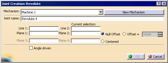 | The Joint Creation Revolute dialog box appears. |