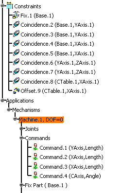 of the machine. The Mechanisms node on the specification tree
