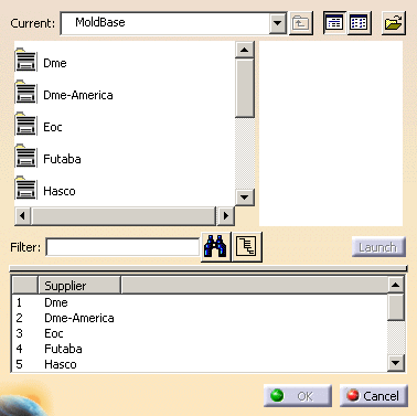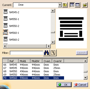 (Dme, Eoc, Hasco, etc.) to visualize a pre-display of the mold base in the
