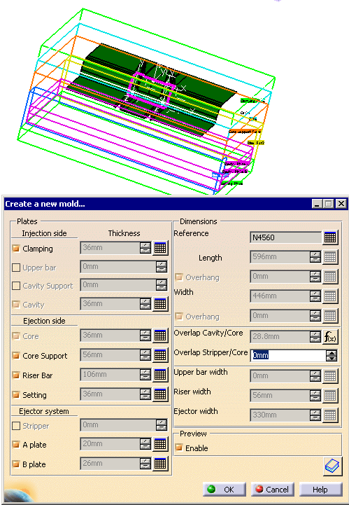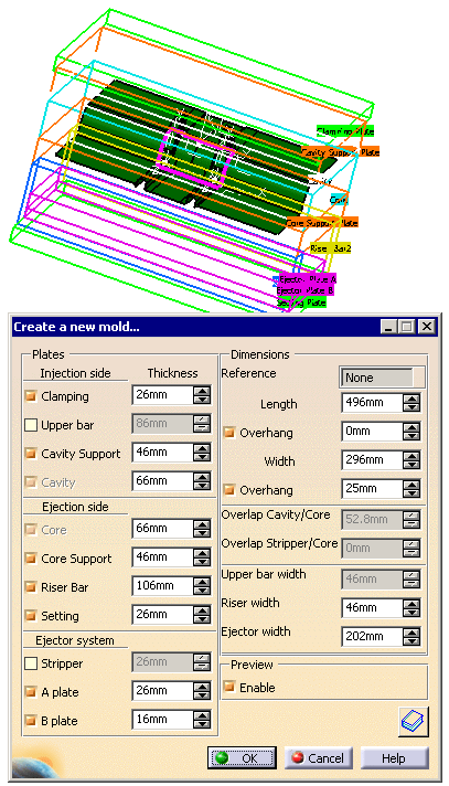 dialog box is displayed, and the mold is pre-visualized around the molded