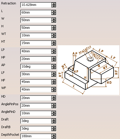 the Angle Pin has been created. When parameters H and/or Retraction are modified,