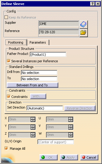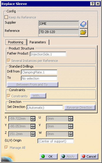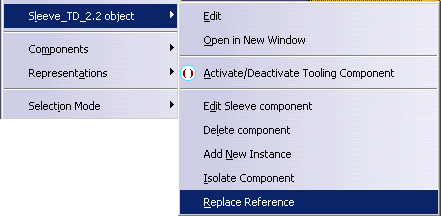 Click OK to validate and exit the dialog box. Note that the sleeve reference in the tree has changed and