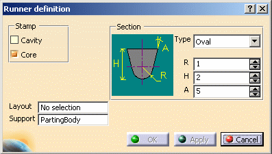 - The Angle value can be set to 0 degree, so that the oval section is an
