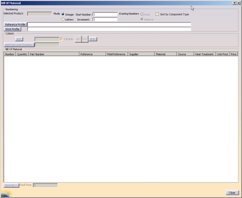 The Bill Of Material dialog box appears.
