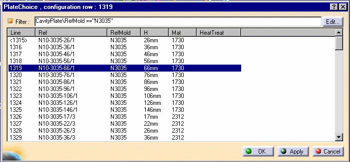 click the design table icon for the Cavity.