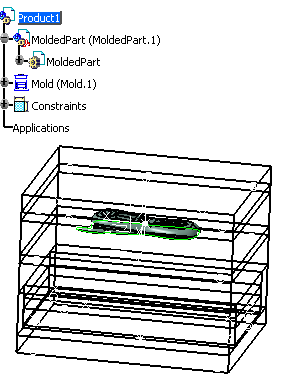 The outline of the mold base is displayed with a different color for