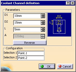 The coolant channel definition dialog box and