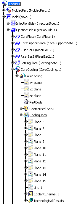specification tree to go back to Mold Tooling Design.