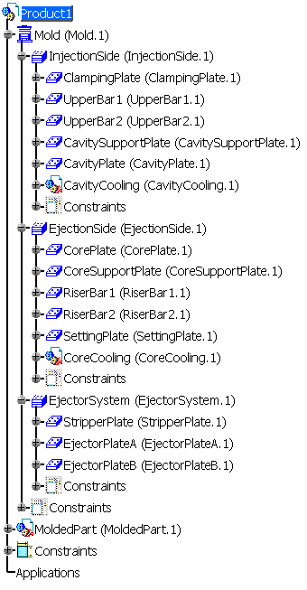 InjectionSide, EjectionSide and EjectorSystem are CATProducts The compulsory names for plates are: