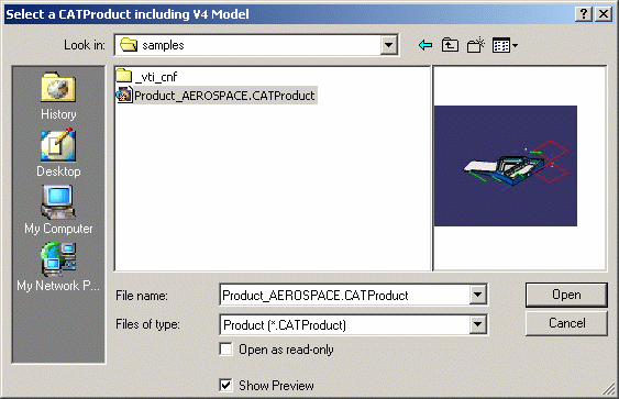 | 2. | Navigate to the desired CATProduct and click Open. | |