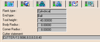 The V4 tool information is listed along with the corresponding CUTTER/ statement. If a Detailed tool was used no information is displayed. This is the information of the previous Tool Change operation of the NC Mill set. |