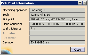 that the point picked is a "machined area pick." To get information