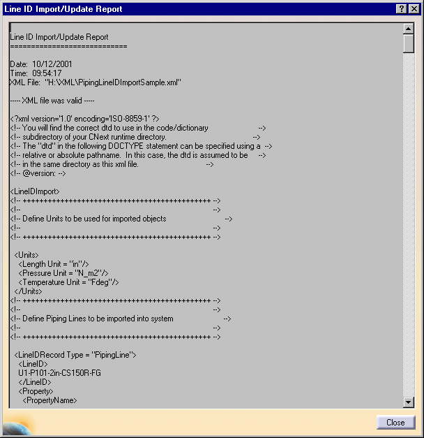 In all cases, copy the PlantShipLineIDImport.dtd and the PipingLineIDImportsample.xml file to a local directory with 'write access'. In the following scenario both the sample XML file and the DTD have been copied to a user Temp directory. |