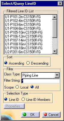 The Select/Query Line ID dialog box opens showing the updated and imported