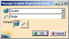 Before you create multiple representations you should set up a Graphic Representations file. (You do this by creating a file - a default is provided if you want to use it - and noting its location in your resource management file. See Understanding Project Resource Management.) A Graphic Representations file allows you to classify each graphic that you create into a specific category. In addition to the four categories that are defined in the application and that were described above, you can create categories based on your specific needs. NOTE: If you are creating a part as a light object you do not need to create additional representations. The application will be able to generate double and single representations for the part. You can, however, change the wording 'double' and 'single' in the text file. |