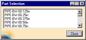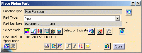 | 6. | Select a function and click OK. The function will display in the Place Piping Part dialog box. | ||