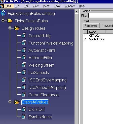 | 1. | Create a text file - with Notepad or another text editor - and enter values for the new attribute. Refer to one of the existing text files to see the format. Save the file in the directory where the other files are located. Give the file the same name as the attribute and follow the naming convention as evident in the existing files. The default location of the DesignRules catalog is ...intel_a\Startup\EquipmentAndSystems\Piping\DesignRules | |