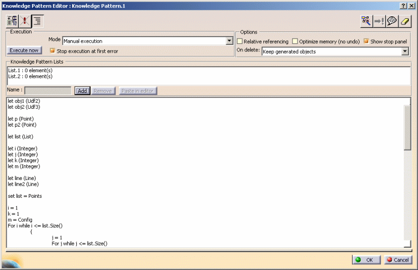 The Knowledge Pattern editor enables you to define the body and the parameters