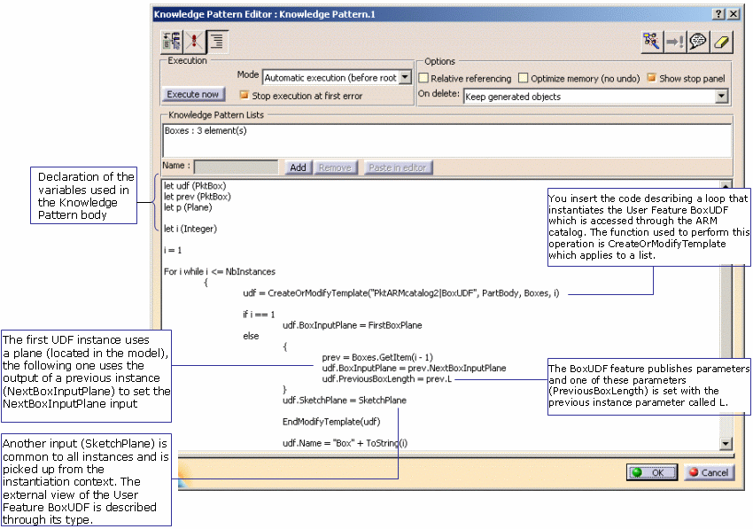 - The Engineering Knowledge Language (EKL) which contains loop structures and conditional