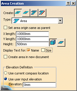| 5. | Select other options, as needed, displayed in the Area Creation dialog box. These are explained in Create Area by Size and Location. | |