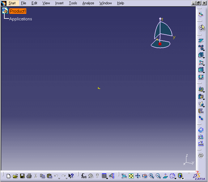 loaded and an empty CATProduct document is opened.