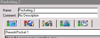Select the ReworkPocket.1 feature from the list in the Geometry tab. The dialog box is then updated with information from the feature. |