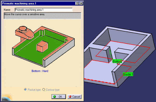 | Click OK to create the feature called Prismatic machining area.1. This feature references the selected pocket geometry. | ||