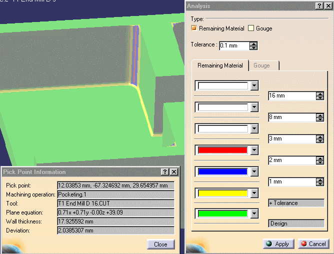 You can see that the remaining material has now been machined by the Profile Contouring operation. Close the Analysis and Replay dialog boxes. Click OK to create the Profile Contouring operation. |