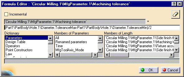 operation, the machining tolerance is parameterized as shown by the
