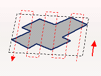 For One way and Back and forth tool path styles, you can select the Bounding envelope check box to machine the maximum bounding rectangle of the part. After selecting the geometry to be machined, this rectangle is computed after defining a machining direction.