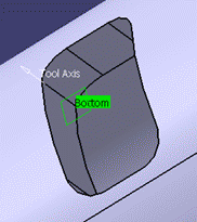 As there is no tool axis defined for these features, (0,0,1) is taken as the default tool axis. Once this feature is selected in any Pocketing or Profile contouring operation, the direction of the virtual bottom plane is guided by the operation tool axis and it always remain perpendicular to the tool axis. Any change in the tool axis is reflected in the bottom plane direction. Once any Prismatic Machining Area or Prismatic Rework Area is selected in the operation the bottom plane direction is over ridden by the tool axis direction of the operation. From then onwards, direction of the bottom plane in the features remain as that direction only, no matter feature is part of the operation or not. But this is applicable only if bottom is selected as point.