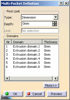 The Multi-Pocket Definition dialog box reappears. Only seven