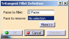removal of one of the three faces selected. This task shows how to create a tritangent fillet. |