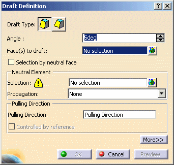 - If you need to draft several faces using a pulling direction normal