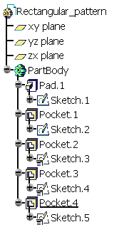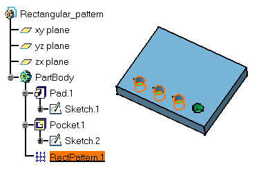 Open the RectangularPattern.CATPart document and perform a basic pattern. |